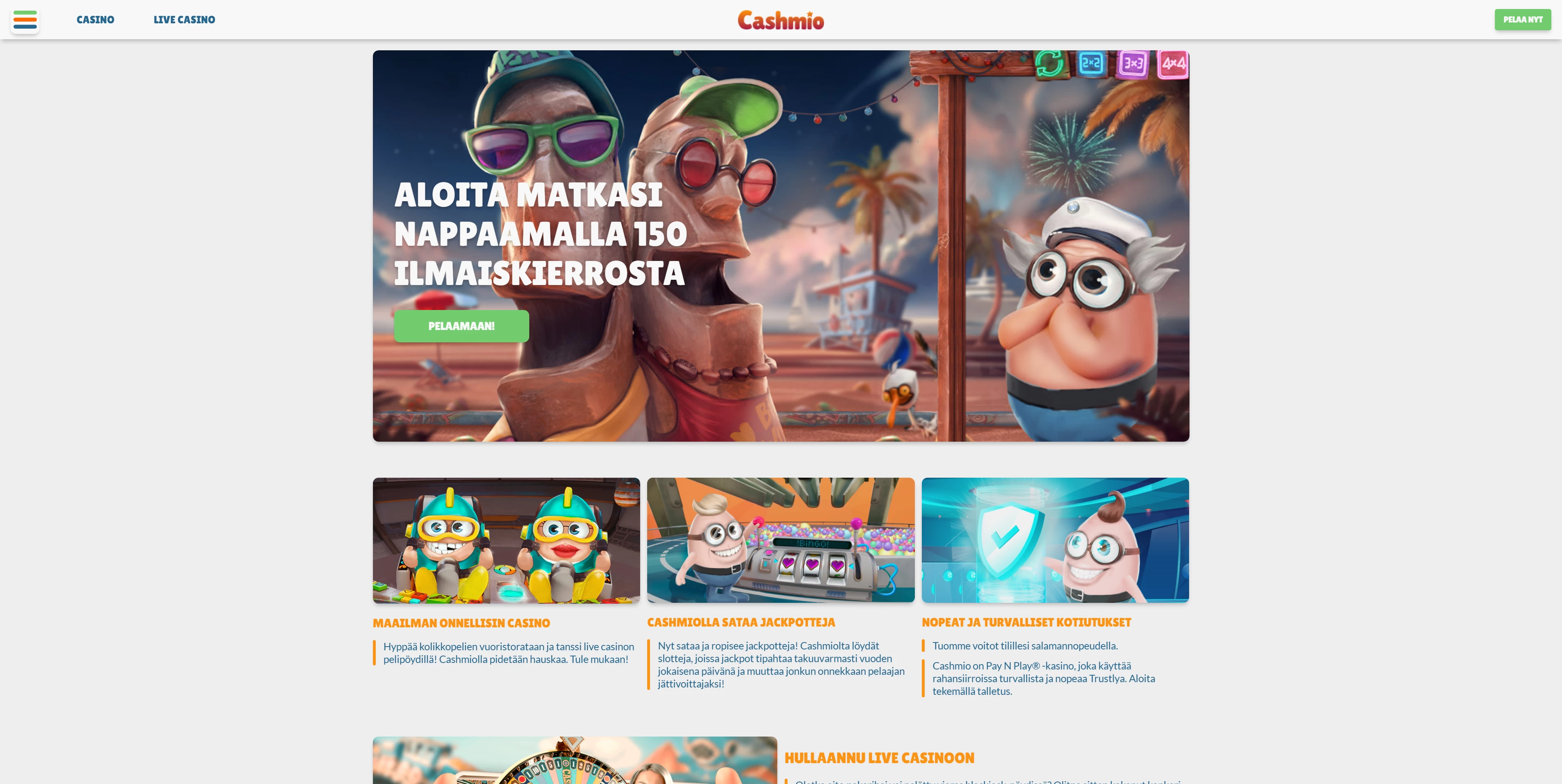 The easiest way to reach Cashmio customer service is through your own chat site. If you wish, you can also contact us by e-mail. Of course, there are also Finnish-speaking staff working in customer service, which means that you don’t have to try to explain your own problems in the London dialect. Cashmio customer service is open around the clock.